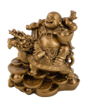 Tato unikátní soška spojuje hned několik mocných symbolů štěstí a prosperity. Usmívající se Buddha přináší radost, klid a pozitivní energii, která naplňuje prostor harmonickou atmosférou. Dračí želva je symbolem dlouhověkosti, ochrany a stability, zatímco ingot, který Buddha drží v ruce, zosobňuje bohatství, finanční úspěch a hojnost.