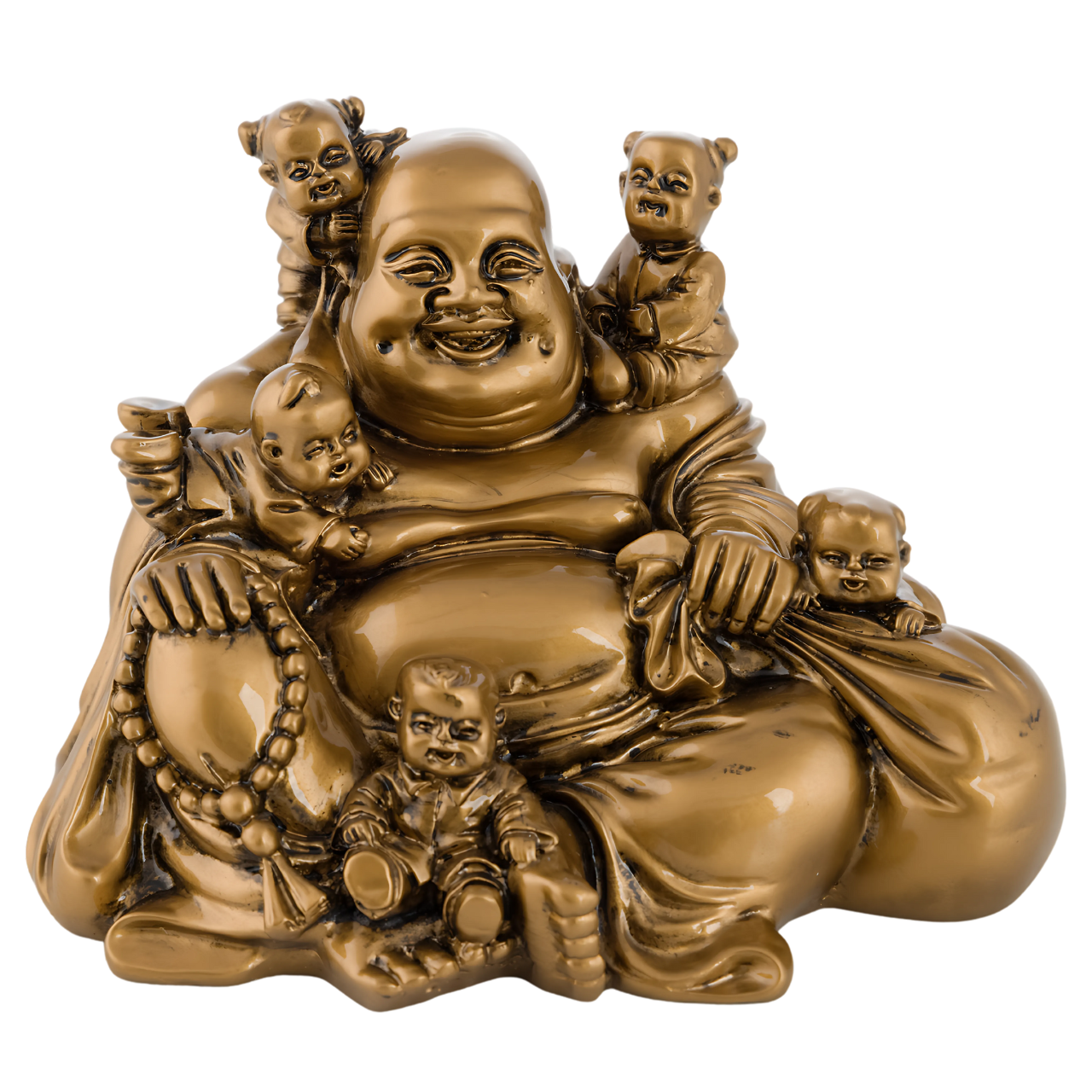 Soška Buddhy s pěti dětmi je tradiční symbol radosti, štěstí a hojnosti. V asijské kultuře představuje harmonii rodiny, prosperitu a naplněný život. Krásná dekorace, která vnese do vašeho domova pozitivní energii a úsměv.