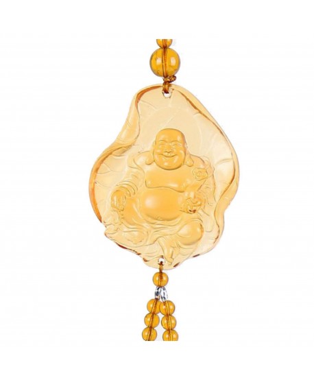 Náš žlutý Buddha je ručně vyráběn z prvotřídního liuli skla, které zajišťuje jedinečný lesk a jemnost detailů. S rozměry 6 cm x 7,5 cm a celkovou délkou přívěsku 39 cm se stane okouzlujícím centrem vaší domácnosti či pracovního prostoru.