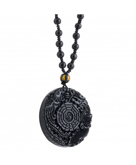 Drak a fénix obsidiánový náhrdelník spojuje symboliku síly a harmonie. Drak představuje mužskou energii (Yang), zatímco fénix symbolizuje ženskou energii (Yin). Společně přinášejí rovnováhu, ochranu a prosperitu. Obsidián podporuje duševní sílu.