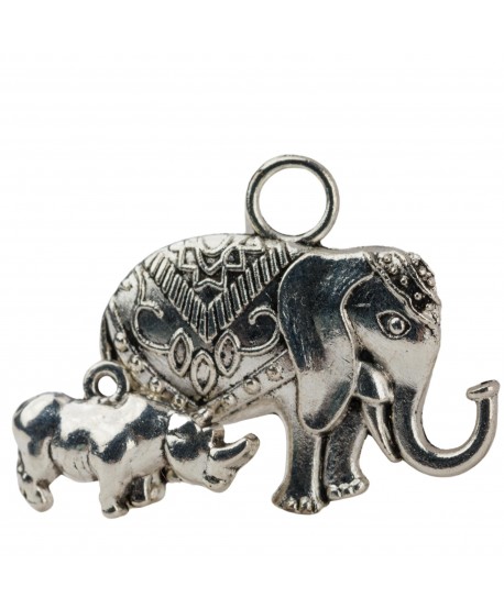 Přívěsek nosorožce a slona je šťastný talisman proti nepřející energii způsobující vloupání, boje nehody, krádeže. Je to symbol ochrany, kdy slon symbolizuje sílu, moudrost, dlouhověkost a štěstí a nosorožec je symbolem ochrany před krádeží, nehodami, nepřejícími. Nosorožec je těžký a silný, schopný uchránit Vás před zlem.