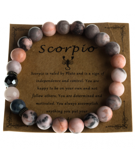 Elegantní náramek ručně vyrobený z přírodních drahokamů, laděný podle znamení zvěrokruhu štír. Každý kámen byl pečlivě vybrán pro svou harmonii s energií tohoto znamení, podporující intuici, sílu a vášeň.