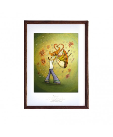The set Journey to self contains 32 images size 12 x 17 cm. On one side of the card is an illustration with a short text, which is on the other side led into a few sentences. Cards with pictures are framed in the beautiful natural alder frame, which also serves as a box with a lid.
