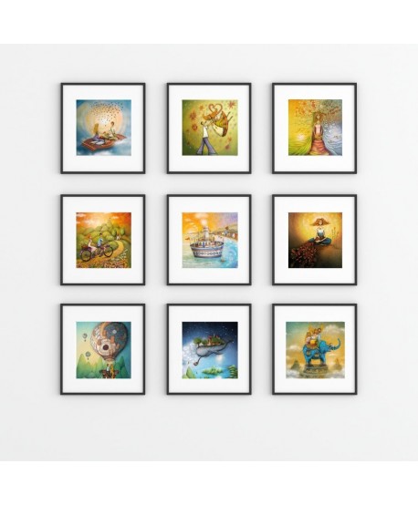 A: Kolekce je navržená jako celek, kde jednotlivé ilustrace tematicky i esteticky ladí, proto je k dispozici pouze kompletní sada 9 obrázků, aby byl zachován jedinečný koncept.
