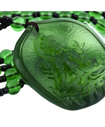 Náhrdelník v sobě snoubí umělecké řemeslo s hlubokou duchovní symbolikou. Spojení průzračných skleněných korálků s jemným přívěskem Tary vytváří neobyčejně elegantní a okouzlující šperk, který zaujme na první pohled.