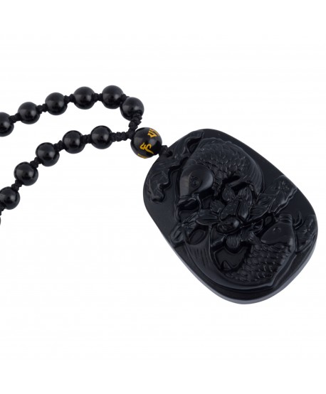 Náhrdelník z obsidiánu s motivem ryby hojnosti kombinuje ochranné vlastnosti obsidiánu a symboliku prosperity. Obsidian čistí negativní energie a přináší uzemnění, zatímco ryba hojnosti ve feng shui podporuje finanční úspěch a blahobyt.