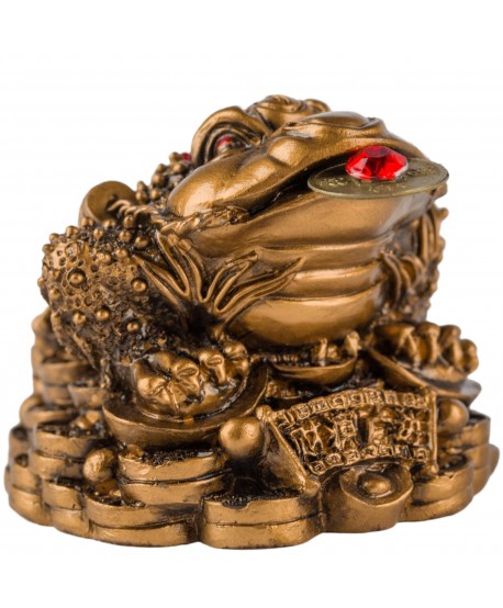 Zlatá trojnohá žába s mincí v puse sedící na ingotech je symbolem hojnosti, úspěchu a bohatství. Trojnohá žába je tedy nejen dekorace, ale i talisman, který má dle víry zvyšovat finanční blahobyt a přinášet štěstí do života lidí, kteří ji vlastní.