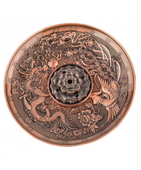 Kadidlo stojánek s krásným zdobeným talířem s drakem a fénixem na vonné tyčinky v kruhovém tvaru, bude zaručeně ozdobou každého interiéru.