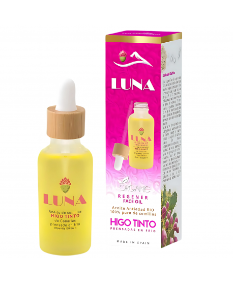 A LUNA - REGENER ARCÁPOLÓ OLAJ SZÉRUM egy luxus arcszérum, amely 100%-ban tiszta, Kanári-szigetekről származó vörös fügemagolajat (HIGO TINTO) tartalmaz. Ez a természetes termék mélyen hidratálja, regenerálja és megfiatalítja a bőrt. Antioxidánsokban, omega-zsírsavakban és természetes vitaminokban gazdag formulájának köszönhetően puhává, rugalmassá és ragyogóvá teszi a bőrt.