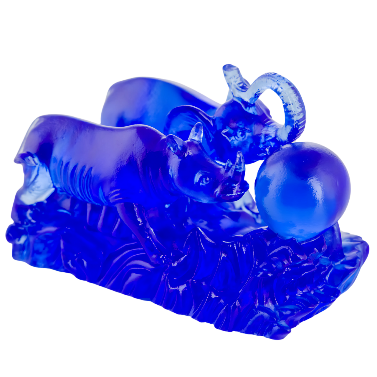 A feng shuiban a kék szín a békével, a nyugalommal és az értelemmel társul. Ezenkívül a kék üveg a víz elemét is hozza magával, ami fontos a bölcsesség erősítéséhez és a személyes fejlődéshez. A víz elem támogatja a pozitív energia áramlását és kiküszöböli a pangó chit, ami jelentős hatással lehet az otthonra és lakóinak életére. A kék üveg az elefánt és az orrszarvú erejével kombinálva egy harmonikus egészet alkot, amely nemcsak esztétikailag, hanem funkcionálisan is kiemelkedő.