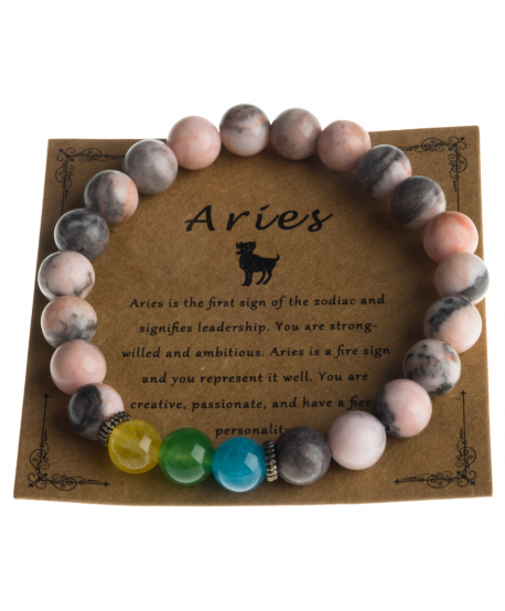 Elegáns karkötő természetes drágakövekből, kifejezetten a Kos jegyéhez igazítva. A Kos az állatöv első jegye, vezető, úttörő, a bátorságtól teli lélek. Ez a csillagos karkötő erőteljes drágaköveket ötvöz, amelyek rezonálnak az energiájával. Az asztrológiai medál a jegyhez személyes bájt kölcsönöz az ékszernek. Ideális talizmánként vagy eredeti ajándékként.
