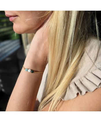 Egy finom és kifinomult karkötő, amely illik a Szűz jegy nyugodt energiájához. Ez az aranyozott karkötő finom kövekkel a Szűz jegy nyugodt és analitikus természetét tükrözi. Ideális azok számára, akik értékelik az egyszerűségben rejlő szépséget.