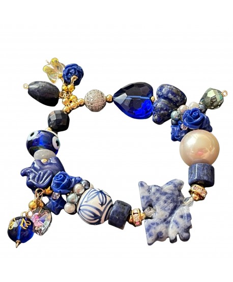 Szodalit, sárkány, lapis lazuli, mantra gyöngyök, elefánt, gonosz szem varázsa, lótuszvirág, sütőtök - wulou.