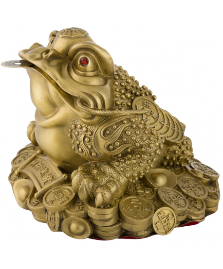 Ez a lenyűgöző, XXL méretű, háromlábú béka, amely egy halom érmén és aranyrudakon ül, szájában egy kínai pénzérmével, a szerencse, a jólét és a siker erőteljes szimbóluma. A hagyományos kínai legenda szerint ez a misztikus lény gazdagságot és anyagi bőséget hoz minden otthonba, ahová helyezik.