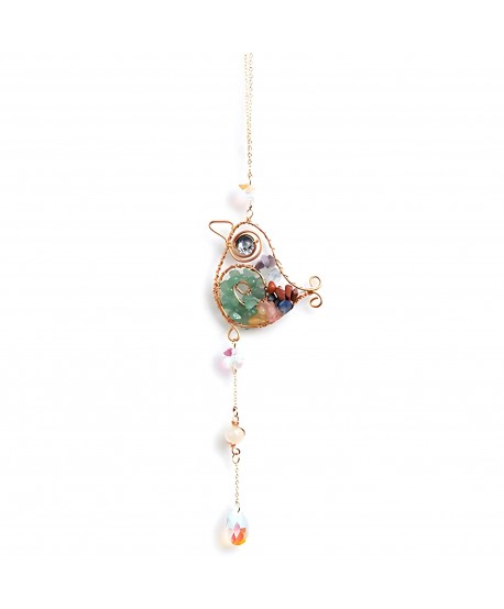 Ez az elegáns függő dekoráció egy rézmadarat tartalmaz, természetes kövekkel kiegészítve, amelyek harmonizálják az energiát, és örömet, békét és pozitív hangulatot hoznak a térbe. A szabadságot, a boldogságot és a természettel való kapcsolatot szimbolizálja. Ideális az ablakba akasztani, a teraszon vagy bárhol, ahol meghitt és inspiráló légkört szeretne teremteni.