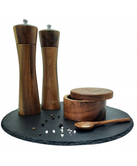 Csodálatos Wellness íz ínyenceknek – Akácmalmok és sószóró + 3 BÓNUSZ (200g durva kelta só, 50g ceyloni bors, 100g Fleur de Sel)