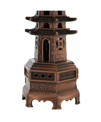 Ez a 18 cm magas, alumíniumötvözetből készült bronz pagoda nem csupán egy átlagos dekoráció. Egy erőteljes feng shui szimbólum, amely: