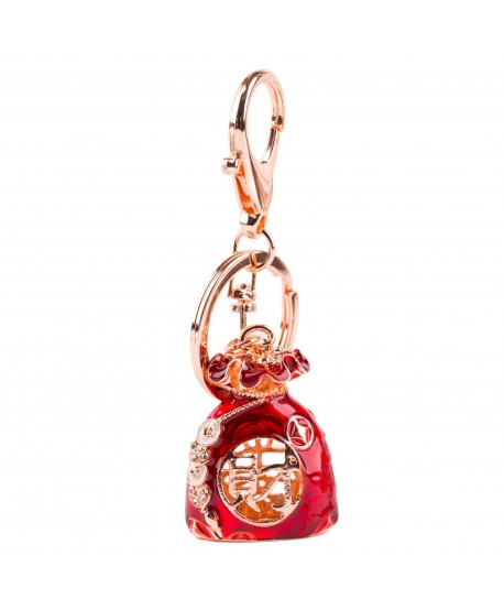 A gyönyörű, strasszokkal díszített kínai hátizsák kulcstartó a gazdagság és a siker szimbóluma.