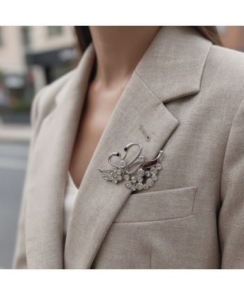 Az egymásra néző gyönyörű hattyúpár bross a tisztaság, a hűség, az erős és szeretetteljes kapcsolat, a boldog és elégedett házasság szimbóluma. A hattyúk kizárólag párban élnek, és soha nem cserélnek partnert.