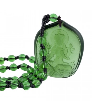 A nyaklánc a művészi kivitelezést a mély spirituális szimbolikával ötvözi. Az átlátszó üveggyöngyök és a finom Tara medál kombinációja rendkívül elegáns és elbűvölő ékszert alkot, amely első pillantásra vonzza a tekintetet.