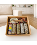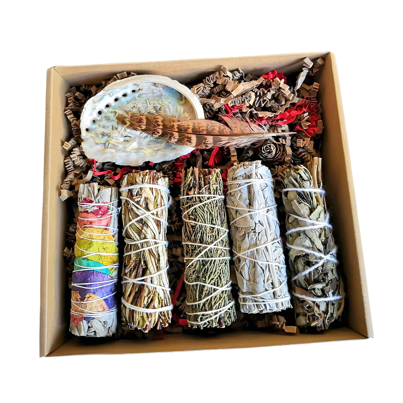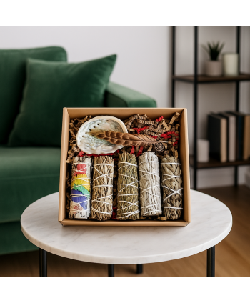 Ajándékozd meg magadnak a mély béke és a megtisztulás pillanatát. Ez a kivételes sámán ajándékkészlet öt legnépszerűbb füstköteget tartalmaz a tér, az elme és az energia harmonizálására, valamint egy gyönyörű tengeri fülkagyló-páncélt, amely természetes tálként szolgál a biztonságos dohányzáshoz. Minden gondosan becsomagolva egy elegáns ajándékdobozba kerül, készen arra, hogy örömet okozzon és megteremtse a rituálé szent hangulatát.