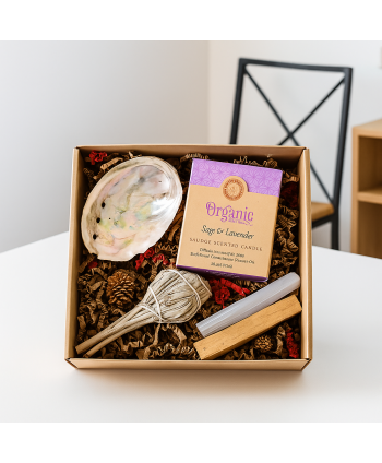Hozz harmóniát, békét és tiszta energiát otthonodba. Ez az ajándékkészlet tartalmaz egy csokor fehér zsályát és egy Palo Santo fahasábot a tisztításhoz, egy szelenit rudat az energia kiegyensúlyozásához, egy természetes illatú szójagyertyát pohárban és egy Abalone füstölőhüvelyt. Gyönyörű, környezetbarát csomagolásának köszönhetően ideális ajándék a békéhez, az egyensúlyhoz és az új kezdetekhez.