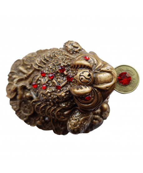 Zlatá trojnohá žaba s mincou v papuli sediaca na ingotoch je symbolom hojnosti, úspechu a bohatstva.