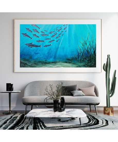 Ručne maľované umelcami: Každý kus je originál. Naši skúsení umelci strávili hodiny detailnou prácou, aby zachytili zmysel pre pohyb a živosť rýb. Tento obraz nie je len dekoráciou; je to investícia do umenia a vášho osobného rastu.