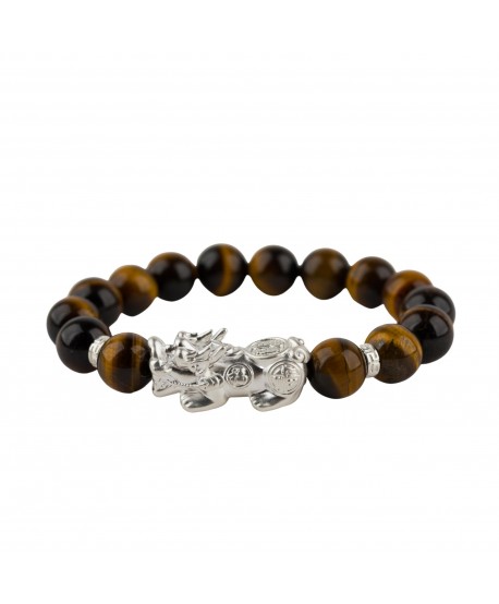 Luxusný ochranný náramok tigrie oko s Pi Yaom zo striebra je ochranný symbol pre svojho majiteľa.