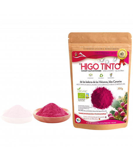 100% čistý prášok z červenej figy (HIGO TINTO®) - bez pridaných cukrov, sladidiel, farbív alebo konzervantov.