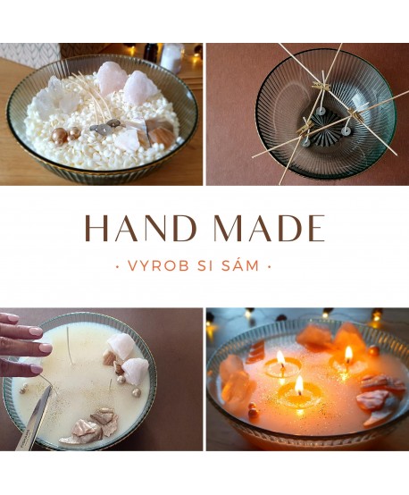 Kreatívna sada pre výrobu sójovej sviečky. Stačí rozbaliť a vnútri nájdete všetko potrebné na výrobu sójovej sviečky vrátane podrobného návodu. Je preto vhodná pre začiatočníkov alebo ako kreatívny darček.