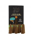 Vonné kužele tečúci dym – biela šalvia a Palo Santo prinášajú harmóniu a očistu priestoru. Kombinácia posvätnej bielej šalvie a posvätného dreva Palo Santa vytvára uvoľňujúcu, duchovnú atmosféru. Kolky sú ideálne pre meditáciu, rituály alebo jednoduché navodenie pokoja a pohody. Vďaka efektu tečúceho dymu vytvárajú hypnotizujúci vizuálny zážitok.