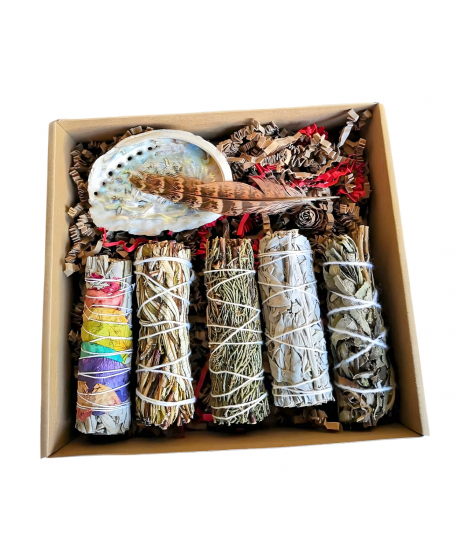 Daruj (si) okamih hlbokého pokoja a očisty. Táto výnimočná šamanská darčeková sada obsahuje päť najobľúbenejších vykurovacích zväzkov na harmonizáciu priestoru, mysle i energie a nádhernú lastúru Abalone ako prírodnú misku pre bezpečné vykurovanie. Všetko je starostlivo zabalené v elegantnej darčekovej krabici, pripravené potešiť a navodiť posvätnú atmosféru rituálu.